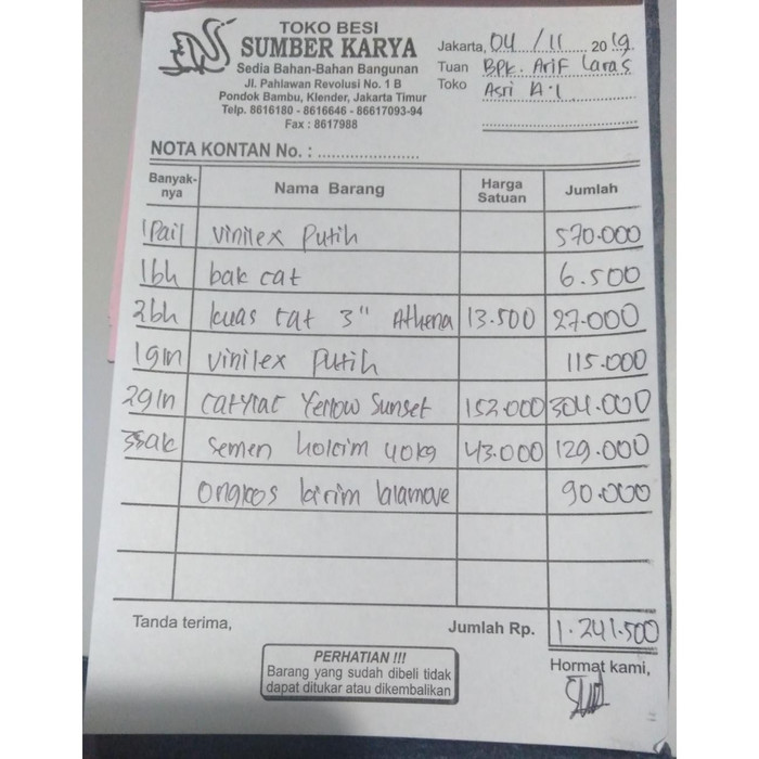 Contoh nota toko bangunan. Sebelum download file sebaiknya ikuti tutorial lengkap cara membuat desan nota toko format corel sekaligus template desainnya yang bisa didownload pada deskripsi video secar gratis tanpa iklan. Tapi apakah sobat tahu bahwa nota juga memilik banyak jenis dan semuanya tergantung. Toko merupakan tempat menjual segala macam bahan atau benda baik itu berupa bahan bangunan toko sembako ataupun apotik dan lainnya. Download contoh nota berbagai toko format cdr bagi sobat yang hanya memerlukan contoh atau file desain nota yang bisa diedit silahkan download di bawah ini. Free download secara gratis file wor doc nya. Contoh nota penjualan toko bahan bangunan.