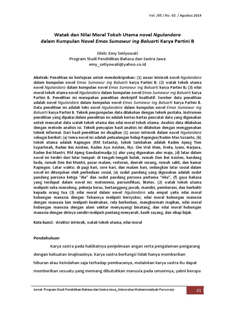618 pm no comments. Sinopsis novel bahasa jawa. Wis akeh penghargaan ditampa dening soeparto brata minangka puisi jawa. Thursday november 14 2013. Contoh rpp bahasa jawa teks berita analisis kajian semantik. Novel iki nyeritakaké uripé wong wadon jawa jenenge jemini.