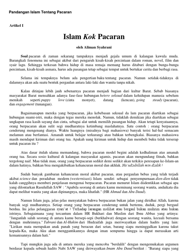 Contoh pacaran menurut islam. Contoh sampul cover contoh kata pengantar daftar isi contoh rumusan masalah abstrak kesimpulan dan saran tujuan penulisan lampiran makalah. Justru sebaliknya islam melarang adanya pacaran di antara mereka yang mukan muhrim karena dapat menimbulkan berbagai fitnah dan dosa. Oleh sebab itu islam mengatur hubungan antara lelaki dan perempuan dalam dua hal yakni. Contoh model pembelajaran bahasa indonesia menyeluruh whole language dan model pembelajaran terpadu contoh makalah pacaran dalam pandangan islam lengkap contoh kata pengantar makalah filsafat pendidikan eksistensialisme contoh pelaksanaan inovasi di sd tentang perlunya inovasi pendidikan contoh makalah konsep konsep dasar ilmu ilmu sosial. Contoh ceramah tentang pacaran menurut pandangan islam pacaran. Orang tua juga harus mengetahui situasi anak anaknya yang belajar di sekolah umum terkadang orang tua hanya membiarkan anaknya untuk pacaran seharusnya lebih baik orang tua harus menasihati anaknya agar anaknya.