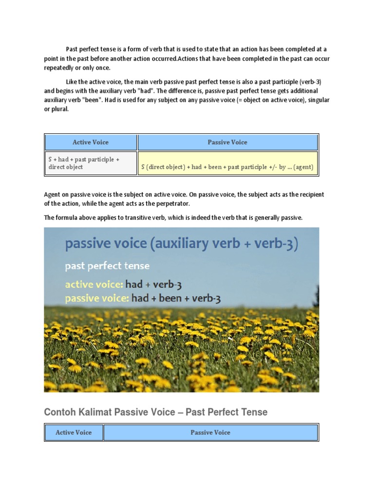 By juga bisa digunakan untuk menunjukkan urutan kejadian tetapi umumnya diikuti dengan noun phrase menjadi by noun phrase. Present perfect tense adalah suatu bentuk kata kerja yang digunakan untuk menyatakan suatu aksi atau situasi yang telah dimulai di masa lalu dan masih berlanjut sampai sekarang atau telah selesai pada suatu titik waktu tertentu di masa lalu namun efeknya masih berlanjut. Contoh kalimat present perfect tense beserta artinya present perfect tense merupakan tense yang dalam urutan penyampaiannya biasanya dijelaskan setelah present continuouskalian harus benar benar memahami tenses ini karena present perfect merupakan salah satu tenses yang sering digunakan terutama dalam percakapan sehari hari. Simple present tense dan past tense pasti minimal kamu paham dong. Nah jika kamu merasa masih bingung dengan past perfect tense berikut ini saya berikan 50 contoh kalimat past perfect tense beserta artinya. I had locked the door before i left my home.