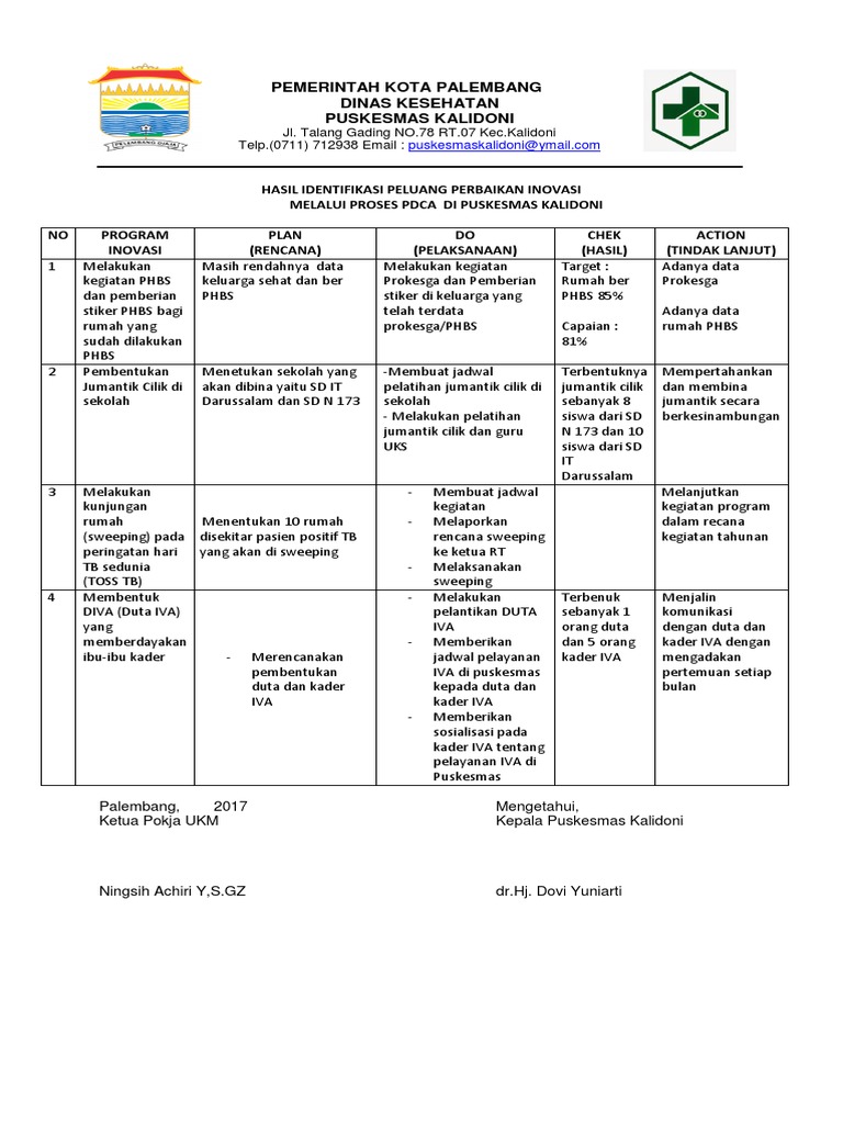 Salah satu penyebab ibu meninggal karena saat ingin melahirkan anak harus ke puskesmas yang ada di kecamatan. Pembinaan dan pengarahan kegiatan ukm puskesmas. Sementara dmaic akan lebih powerfull dalam hal menghilangkan varian output kestabilan akan mutu improve yield situasi yang lebih komplek struktur penghematan biaya dan efektivitas organisasi bisnis. Dengan bergai macam cara. Salah satu contoh pembuatan bentuk rencana quality control bisa anda lihat di bawah ini. Implementasi siklus pdca kegiatan ukm puskesmas.