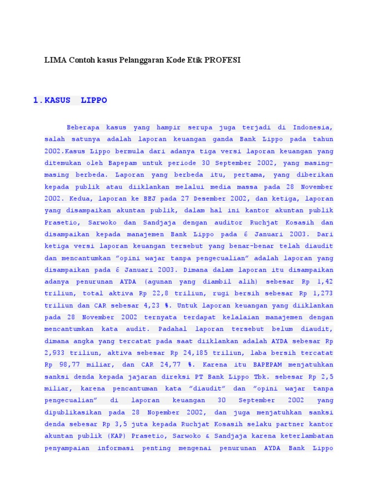 Berdasarkan kode etik advokat indonesia yang disahkan pada tanggal 23 mei 2002 1 mengatur tentang etika etika advokat termasuk mengatur tentang etika advokat dalam hubungannya dengan kliendalam kasus joko sriwidodo peradi berhentikan joko sriwidodo dari pengacara. Kode etik dan sumpah adalah janji yang harus dipegang teguh. Pelanggaran kode etik it faktor penyebab pelanggaran kode etik profesi it adalah makin merebaknya penggunaan internet. Jaringan luas computer tanpa disadari para pemiliknya di sewakan kepada spammer penyebar email komersial froudster pencipta setus tipuan dan penyabot digital. Pelanggaran kode etik pelanggaran disiplin contoh pelanggaran sanksi contoh pelanggaran sanksi sinergi tidak menyebarkan informasi yang tidak dapat dibuktikan kebenarannya menimbulkan rasa kebencian. Contoh kasus pelanggaran kode etik psikologi ke 2 a.
