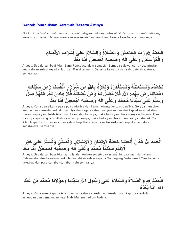Contoh Pembukaan Ceramah Beserta Artinya Blog Islami
