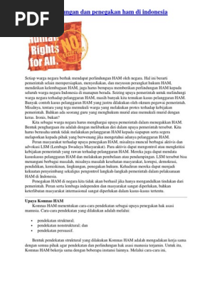 Pemerintah harus berupaya untuk melindungi dan menegakan hak hak asasi bagi setiap warga negaranya. Masalah ham memang masalah kemanusiaan berarti terkait dengan upaya tidak saja pengakuan harkat kemanusiaan tetapi yang lebih penting sejauh mana harkat kemanusiaanyang dimiliki setiap orang dapat dimiliki oleh setiap individu tanpa beda. Upaya pemerintah dalam penegakan ham kini mulai terasa dengan dibentuknya beberapa lembaga ham dan diharapkan dapat mewujudkan keadilan dalam ham setiap warga negara indonesia. Sejarah ham di indonesia dan dunia. Pengertian ham macam macam ham contoh pelanggaran ham dan pelanggaran ham di indonesia sejak lahir setiap manusia sudah mempunyai hak asasi yang dijunjung tinggi serta diakui semua orang. Pelanggaran ham kasus marsinah 3.