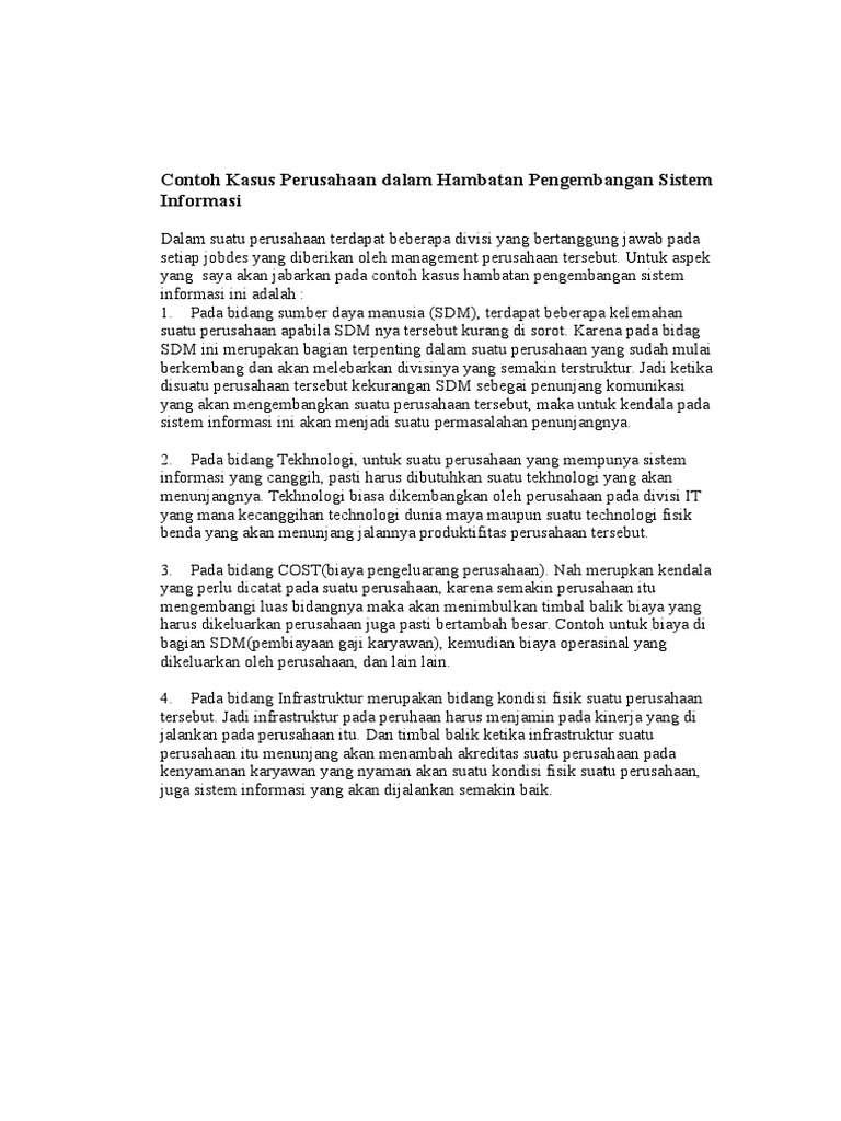 Contoh pengembangan sistem informasi di perusahaan. Dari ketiga alternatif tersebut outsourcing merupakan alternatif yang paling tepat untuk diterapkan bagi perusahaan yang memiliki prosedur yang unik tetapi memiliki keterbatasan waktu dan tenaga ahli. Pentingnya pengembangan sistem informasi tersebut dapat ditanggapi peusahaan dengan tiga alternatif yaitu. Mengendalikan upaya pengembangan sistem dan memotivasi seluruh personil yang terlibat. Contoh kasus penggunaan sistem informasi manajemen pada perusahaan serta prinsip kerja dan teknologi yang digunakan profil perusahaan pt carrefour indonesia carrefour di indonesia hadir sejak tahun 1996 dengan membuka gerai pertama di cempaka putih pada bulan oktober 1998. Membeli aplikasi jadi insourcing sistem informasi dan outsourcing sistem informasi. Dimulai dari pengertian sistem informasi sampai contoh sistem informasi yang ternyata penerapannya ada di dalam kehidupan sehari hari.