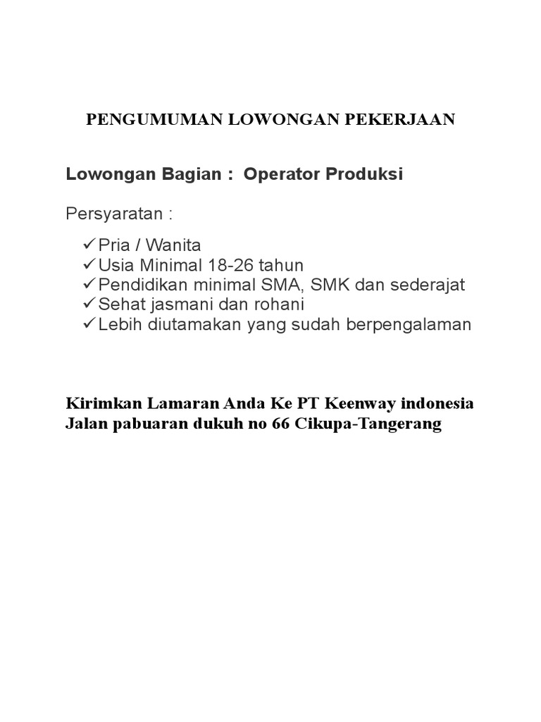 Contoh pengumuman lowongan kerja. Contoh iklan lowongan kerja pada saat usaha anda sudah mulai bersemi ciecie. Hal ini untuk menghindari pelamar kerja yang telat melamar pada saat tidak dibutuhkan atau saat masa kadaluwarsa iklan habis. Contoh surat lamaran kerja di perusahaan seringkali dicari oleh para pencari kerja yang ingin mengajukan lamaran pekerjaan di perusahaan perusahaan yang ada di indonesia. Pekerjaan anda seiring dengan bertambahnya hari semakin penuh sesak. Judul iklan lowongan kerja yang singkat dan jelas mudah dipahami oleh calon pelamar kerja dengan tawaran pendapatan mencapai 1500 atau sekitar rp 20 juta per minggu. Informasi yang anda cari adalah contoh pengumuman penerimaan karyawandibawah ini telah kami sajikan informasi lowongan kerja lulusan sma smk d3 s1 s2 semua jurusan lowongan bank bumn cpns dan swasta lainnya berdasarkan keterkaitan artikel ataupun keterkaitan iklan yang benar benar sesuai dengan kata kunci.