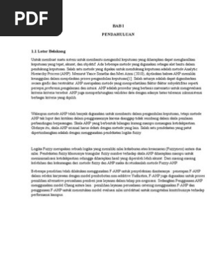 Contoh perhitungan spk metode ahp dengan mengambil studi kasus pemilihan lokasi warnet terbaik. Pengertian analitycal hierarchy process ahp analitycal hierarchy process ahp adalah metode untuk memecahkan suatu situasi yang komplek tidak terstruktur kedalam beberapa komponen dalam susunan yang hirarki dengan memberi nilai subjektif tentang pentingnya setiap variabel secara relatif dan menetapkan variabel mana yang memiliki prioritas paling tinggi guna mempengaruhi hasil pada situasi. Langkah menghitung bobot f ahp alternatif dapat dihitung dengan cara yang sama dengan menghitung kriteria seperti langkah di atas. Algoritma ahp merupakan algoritma untuk memecahkan permasalahan multi kriteria dengan menggunakan perhitungan matrik berpasangan dan membuat score rangking dalam setiap data yang telah diteliti sehingga dapat ditemukan solusi terbaik dari setiap alternatif kriteria algortitma ahp masuk dalam kelompok mcdmmulti kriteria decission making. Contoh perhitungan manual metode profile matching. The implementation of fuzzy ahp for the selection process of pnpm proposed activities are built using php and mysql.