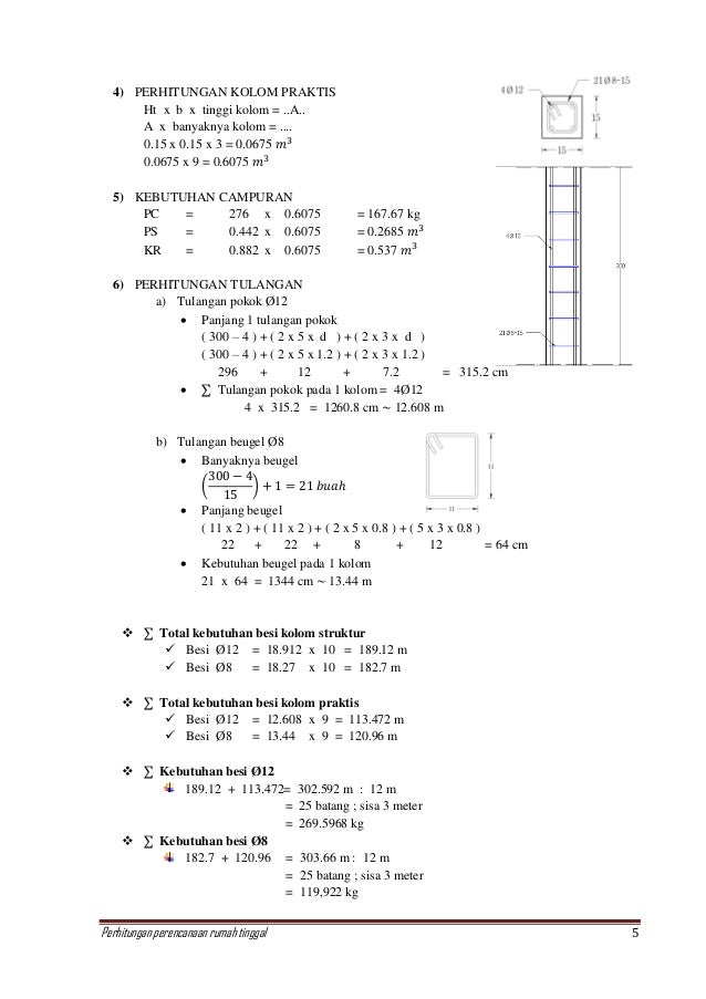 Elemen kolom merupakan batang tekan sehingga keruntuhan yang terjadi pada suatu kolom dapat menyebabkan runtuhnya lantai diatasnya dan runtuhnya bangunan secara keseluruhan. Setelah mendapatkan dimensi balok barulah bisa dihitung besaran penampang kolom untuk menopang balok tersebut. Kolom pendek dengan eksentrisitas besar 4. Kolom pendek bagian dari portal bergoyang. Perhitungan panjang tekuk lebih terperinci. Perhitungan kolom beton bertulang.
