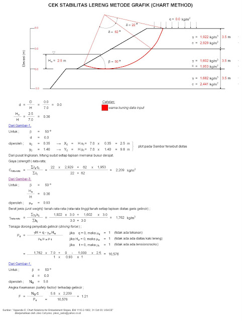 Keamanan stabilitas guling 59479 stabilitas geser 33531 dan daya dukung 34815 sedangkan dengan perkuatan dinding penahan kantilever didapatkan angka keamanan stabilitas guling 60643 stabilitas geser 22346 dan daya dukung 31828. Lereng alamiah lereng akibat galian maupunakibat timbunan. Perhitungan lereng dengan metode fellenius dilakukan dengan membagi massa longsoran menjadi segmen segmen seperti pada contoh gambar 1 untuk bidang longsor circular adalah. Contoh soal suatu lereng yang akan dibentuk dari suatu tanah dengan c 28 kpa φ 20 o γ 16 knm3. 5 analisis stabilitas lereng menggunakan bantuan program geoslope dan perhitungan manual. Kemiringan lereng akan dibuat dengan sudut β 45o terhadap bidang horisontal.