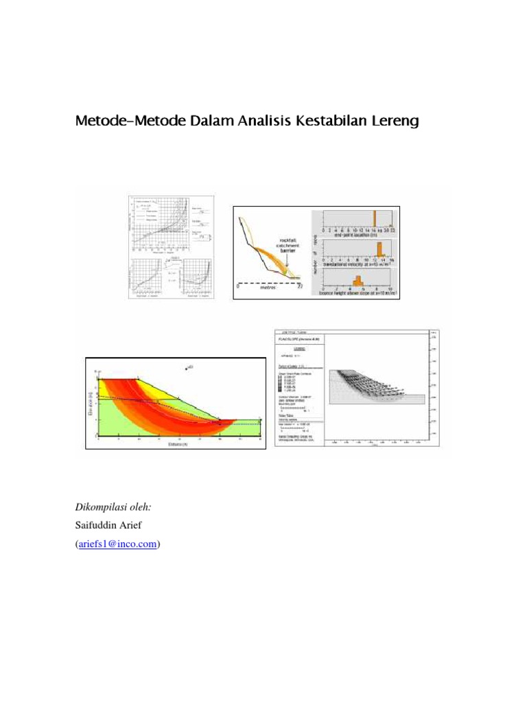 Program analisis stabilitas lereng slope stability analysis program diajukan untuk memenuhi persyaratan dalam menyelesaikan pendidikan tingkat sarjana. Stabilitas lereng stabilitas dinding penahan geotekstil slopew. Untuk nilai fs 35 f c fφ. Pengaruh kadar air terhadap lereng. Faktor aman didefinisikan sebagai nilai banding antara gaya yang menahan dan gaya yang menggerakan atau d f τ τ dengan. Tentukan tinggi bagian tanah yang dipotong untuk membentuk lereng dengan faktor keamanan fs 35.