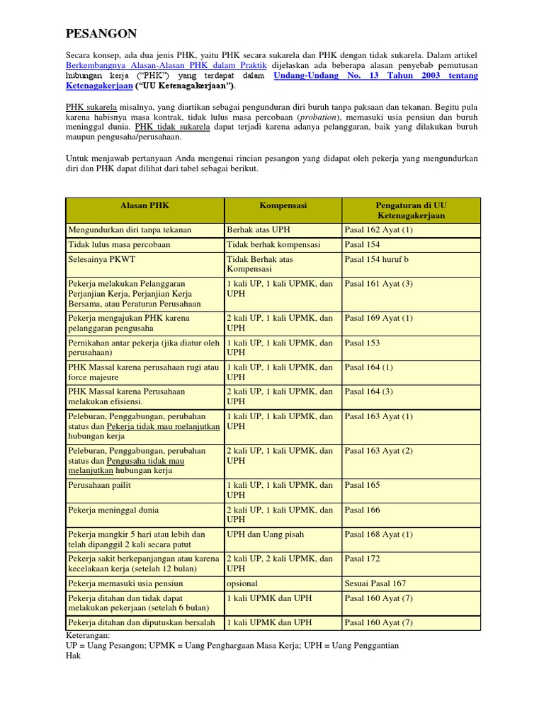Contoh perhitungan uang pisah bagi karyawan yang mengundurkan diri. Dengan kondisi pekerjaan yang sangat dinamis selalu ada kemungkinan terjadinya pemutusan hubungan kerja. Uang pisah ini dapat diartikan sebagai uang penghargaan atas loyalitas bantuan dan pengabdian yang diberikan karyawan selama masa kerja tertentu. Simak ulasan lengkapnya di artikel kali ini. Selanjutnya pasal 162 ayat 2 menyebutkan. Maksudnya undang undang menyebut dan memberikan hak bagi. Berdasarkan pasal 162 undang undang nomor 13 tahun 2003 tentang ketenagakerjaan selanjutnya disebut uuk tidak ada ketentuan yang menyebutkan adanya hak pesangon berupa uang pesangon up dan uang penghargaan masa kerja upmk bagi karyawan yang mengundurkan diri resign sebagaimana diatur dalam pasal 156 ayat 2 dan ayat 3 uuk.