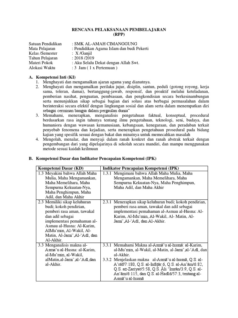 Bersifat mutlak tidak dapat dipengaruhi oleh apa dan serta oleh siapa juga. Perilaku asmaul husna yang pertama menjadi orang yang dermawan sifat dermawan adalah sifat allah swt. Contoh perilaku dari asmaul husna al karim al mukmin al wakil al matin al jami al adl al akhir. Allah swt yang mempunyai asma al jami mampu mengumpulkan jin jin para iblis dan para malaikat sesuai dengan kelompoknya masing masing. Makalah ini bertujuan untuk membahas tentang aplikasi perilaku siswa di sman 1 pemangkat yang sesuai dengan 3 dari 99 asmaul husna yaitu husna al jaami al akhir al adl. Contoh perilaku al mumin maha memberi rasa aman menenangkan teman yang sedih dan ketakutan membantu membimbing teman belajar agar ia tidak takut menghadapi ujian membela teman yang dibully dan lain sebagainya.
