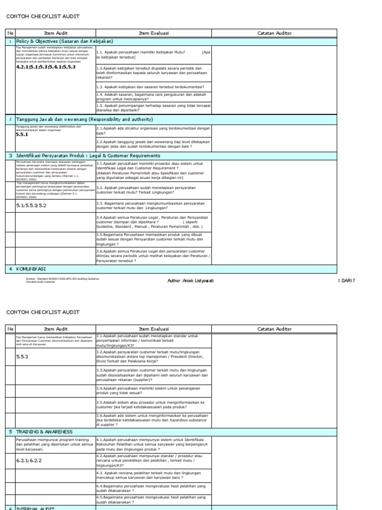 Contoh Checklist Audit Internal Iso