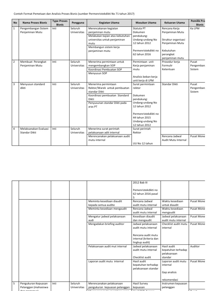 Contoh peta proses bisnis. Dari peta proses bisnis ini kemudian dapat didetailkan menjadi sub peta proses bisnis dan kemudian menjadi sop dan intruksi kerja seperti yang dijelaskan dalam gambar berikut ini. Proses bisnis business process dapat didefinisikan sebagai kumpulan dari proses dan berisi kumpulan aktifitas tasks. Penyusunan peta proses bisnis dimaksudkan sebagai acuan bagi setiap instansi pemerintah untuk menyusun peta proses bisnis di lingkungan instansi pemerintah guna melaksanakan visi misi tujuan dan strategi organisasi. Menata dan mengembangkan proses bisnis unit yang bersangkutan dalam rangka pelaksanaan tugas dan fungsi. Peta proses bisnis badan pendidikan dan pelatihan keuangan sebagaimana dimaksud dalam diktum kesatu terdiri atas. Oleh dosen pendidikan 3 diposting pada 07062020.