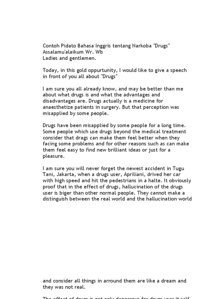 Contoh Pidato Bahasa Inggris Wacana Narkoba Amp Pergaulan Bebas