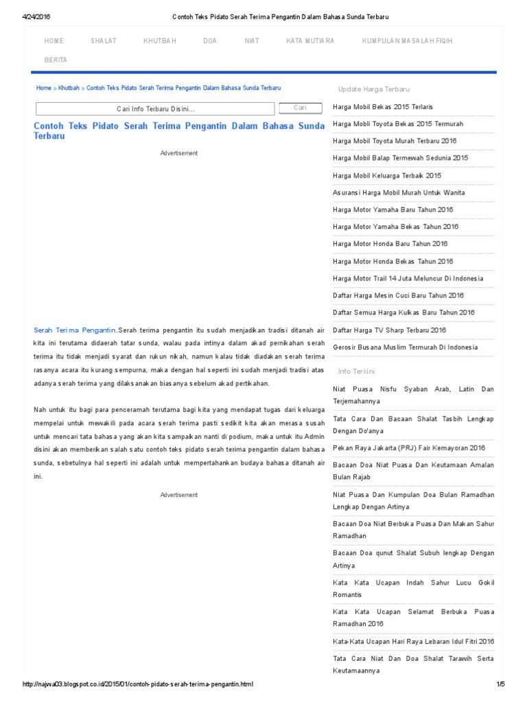 Contoh naskah ini kami rangkum dari berbagai sumber. Wb wilujeng enjing sadayana. Setiap manusia pasti akan menghadapi berbagai kesulitan hidup bagaikan roller coaster. Terlebih jika anda didaulat menyusun naskah pidato dengan menggunakan bahasa daerah. Nah sebagai inspirasi dalam mempermudah anda berikut kami sajikan beberapa contoh naskah pidato dengan berbagai tema dan dalam bahasa tradisional sunda. Pidato basa sunda atau biantara basa sunda berikut ini adalah salah satu contoh bentuk teks naskah pidato yang menggunakan bahasa sunda sebagai bahasa pengantarnya.