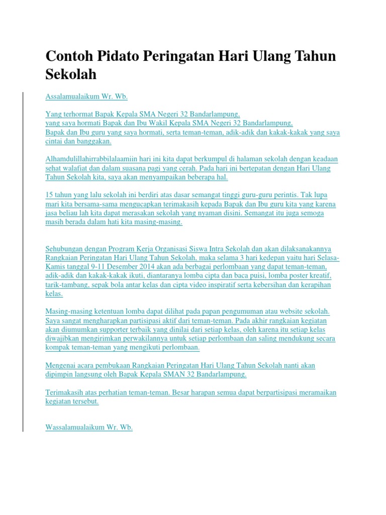Hari minggu bulan bahkan sampai pada tahun dimana kita sudah melakukan tugas dan tujuan kita secara konstitusional sesuai dengan visi dan misi kita bersama atas dasar demokrasi dan undang undang dasar 45. Kebanyakan tamu undangan akan datang dengan busana yang semi formal pula. Contoh pidato pidato hari besar nasional hari besar islam. Saudaraku sahabat sahabat dan teman temanku sekalian yang aku sayangi. Dalam pesta ulang tahun pernikahan biasanya lebih ke semi formal. Biasanya dalam sebuah acara ulang tahun ada satu orang yang bertindak sebgai pembawa acara.
