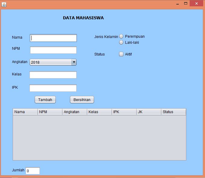 Setelah dkilk maka akan muncul. Disini saya akan berikan dua buah contoh programnya yang pertama hanya program biasa dan yang kedua menggunakan if else. Membuat program program input data mahasiswa cukup mudah karena program yang dibuat sederhana. Netbeans java runtime environmentjre dan java development kitjdk. Pada project mahasiswa klik kanan new jframe from. Program ini sangat sederhana yang kami peruntukan bagi teman teman yang baru terjun ke dunia pemrograman tentu untuk membuat program input biodata akan terasa sangat sulit jika teman teman masih belum paham dasar dasar dari bahasa pemrograman c namun jangan khwatir karna pemrograman input data mahasiswa ini sangat sederna dan mudah di mengerti.
