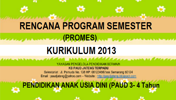 Download contoh program semester paud kurikulum 2013 promes doc untuk tahun ajaran 20162017 semester i dan ii contoh program semester promes paud kurikulum 2013 yang diperuntukkan paud satuan tk kelompok a usia 4 5 tahun dapat di download melalui link tautan berikut ini. Format skpbm semester 1 dan 2 format wordsdocx contoh format jadwal pelajaran kelas bawah tahun 20172018 format excelxlsx download administrasi guru paud super lengkap download aplikasi administrasi guru wali kelas. Program semester promes adalah perangkat pembelajaran yang bermanfaat untuk. Program semester tk yang akan admin bagikan ini disusun sesuai dengan kurikulum 2013 paud. Kumpulan prota prosem rppm rpph kelompok bermain kurikulum 2013 paud untuk membantu ayah bunda dalam mendapatkan administrasi kelompok bermain khusus administrasi kegiatan pembelajaran. Download contoh program semester paud klp a kurikulum 2013 promes doc.