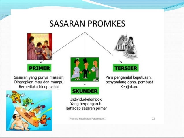 Bab 1 pendahuluan 11 latar belakang perhatian terhadap permasalahan kesehatan terus dilakukan terutama dalam perubahan paradigma sakit yang selama ini dianut masyarakat ke paradigma sehat. Bab ii isi promosi kesehatan promosi kesehatan merupakan upaya untuk meningkatkan kemampuan masyarakat melalui proses pembelajaran dari oleh untuk dan bersama masyarakat agar mereka dapat menolong dirinya sendiri serta mengembangkan kegiatan yang bersumber daya masyarakat sesuai dengan kondisi social budaya setempat dan didukung oleh kebijakan publik yang berwawasan kesehatan. Rekam medis dapat dipakai untuk mengidentifikasi data yang diperlukan guna seleksi dan promosi jasa pelayanan kesehatan. Paradigma sakit merupakan upaya untuk membuat orang sakit menjadi sehat menekankan pada kuratif dan rehabilitatif sedangkan paradigma sehat merupakan upaya membuat orang sehat tetap sehat menekan pada. Teori mengajar kognitif mengajarkan klien untuk dapat mengingatmenerima dan memahami informasi pembelajaran. Terdapat beberapa ruang lingkup kesehatan masyarakat diantaranya adalah epidemiologi biostatistik kesehatan lingkungan pendidikan kesehatan dan perilaku administrasi kesehatan.