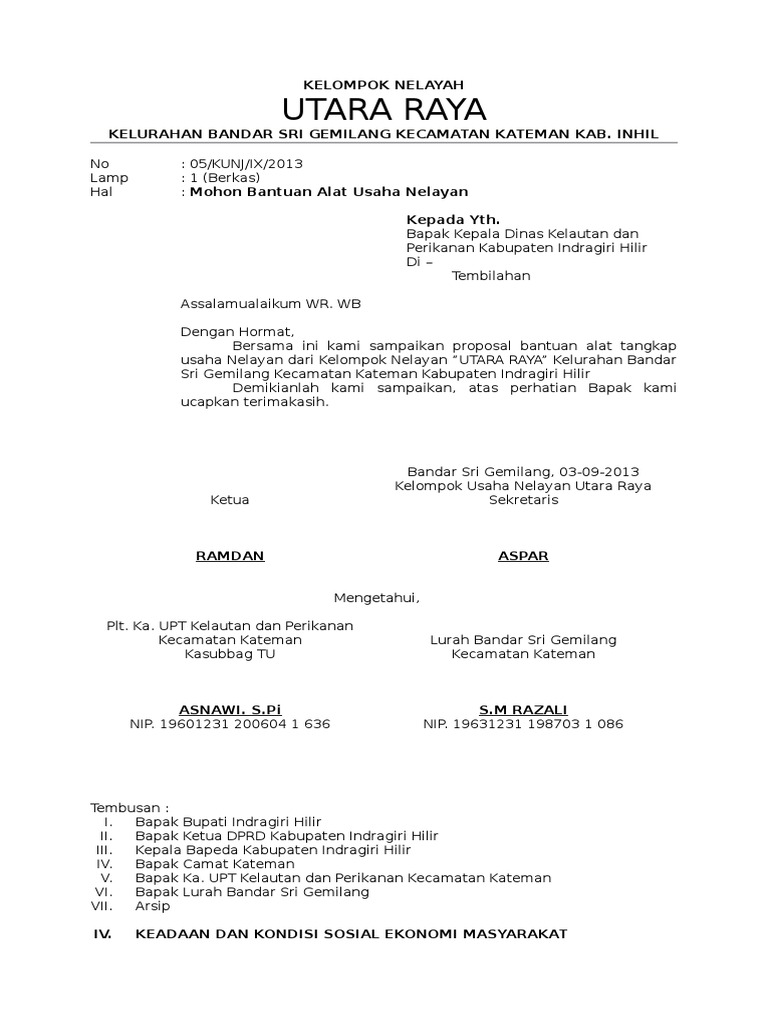 Maka nelayan akan dapat meningkatkan hasil tangkapnya dan hal ini tentu akan menjadi peningkatan ekonomi bagi nelayan tersebut. Contoh proposal pengajuan dana ke perusahaan. Nah itulah diatas sebuah contoh lengkap proposal bantuan dana kelompok tani nelayan mudah mudahan dengan adanya contoh diatas dapat membantu anda yang sedang mencari contoh proposal bantuan dana kelompok tani nelayan. Dengan hormat dalam rangka mewujudkan program pemerintah khususnya pemerintah kabupaten muna guna meningkatkan taraf hidup masyarakat khususnya masyarakat pesisir serta membuka lapangan kerja melalui pengolahan dan eksploitas potensi sumber daya laut kami kelompok nelayan nirwana meminta bantuan perlengkapan alat tangkap ikan sebagaimana yang kami cantumkan di rincian anggaran biaya pada. Maka dengan itu kami dari kelompok nelayan lintas bahari mengajukan proposal bantuan satu unit kapal tangkap g una untuk menunjang kerja kami sebagai wujud partisipasi dalam mendukung program pemerintah baik daerah maupun pusat dalam hal ini mensejahterakan masyarakat nelayan. Sehubungan dengan maksud dan tujuan proposal ini saya sebagai rakyat kecil yang berprofesi sebagai nelayan bermaksud mengajukan dana bantuan untuk mengembangkan usaha saya agar lebih maju dan berkembang.
