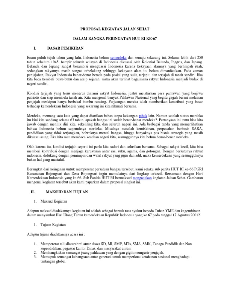 Di bawah ini adalah contoh proposal kegiatan 17 agustus karang taruna tunas muda yang ada di dusun lanteng 2 desa selopamioro kecamatan imogiri. Pdf contoh proposal 17 agustus yang baik dan benar bulan agustus adalah bulan di mana seluruh rakyat indonesia akan memperingati hari kemerdekaan indonesia. Dan untuk memperkuat dugaan saya bahwa kamu sedang mencari contoh proposal 17 agustus saya temukan bukti berupa grafik di bawah ini. Pada bulan agustus biasanya banyak di lakukan kegiatan untuk memperingati hari kemerdekaan republik indonesia.