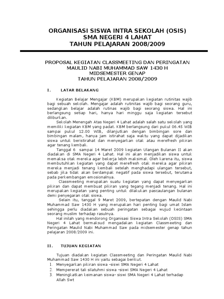 Contoh proposal maulid nabi muhammad saw muludan bismillahirrohmaanirrohim sesungguhnya telah ada pada diri rasulullah itu suri teladan yang baik bagimu yaitu orang orang yang mengharap rahmat allah dan kedatangan hari kiamat dan dia banyak menyebut allah al ahzab 33. Ada banyak manfaat dan kegunaan proposal dalam setiap acara pertama untuk memperolah dukungan dana untuk prizinan dan yang utama adalah legalitas kegiatan tersebut karena didalamnya ada persetujuan dari pihak pihak yang berwenang. Demikian proposal kegiatan maulid nabi ini kami buat. Salah satu peringatan dan kegiatan yang paling banyak dilakukan adalah peringatan maulid nabi muhammad saw. Berikut contoh proposal maulid nabi dibawah ini.