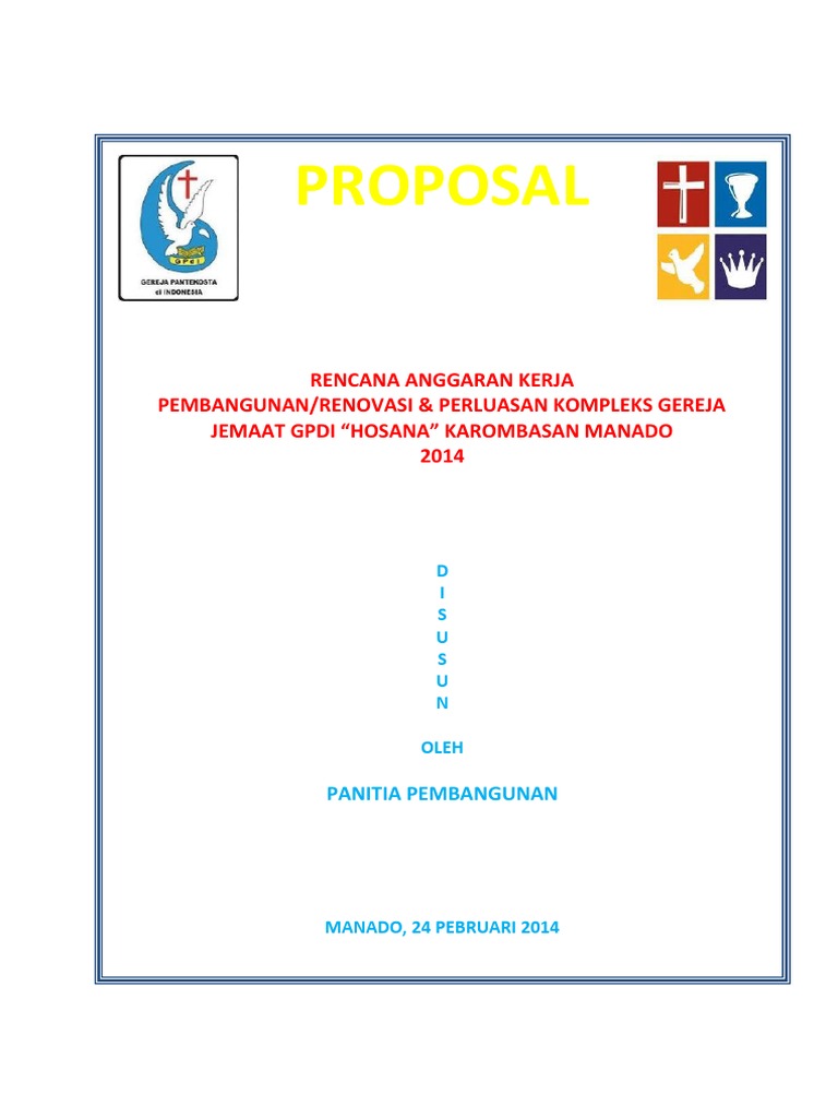 Format kartu kawan kegiatan gerejawi. Carousel previous carousel next. Gereja pantekosta di indonesia gpdi pembaharuan. Documents similar to proposal panitia pembangunan gedung gereja gpib kasih karunia. Contoh proposal permohonan bantuan pembangunan kantor balai rukun tetangga pada kesempatan kali ini saya akan memberikan contoh pembuatan proposal guna untuk permohonan bantuan dana pembangunan kantor balai rukun tetangga contoh proposal dibawah ini sebenarnya adalah contoh proposal yang sesungguhnya yang di pakai kampung saya untuk di tujukan ke balai desa potorono untuk permohonan bantuan. Proposal pembangunan gereja nama.