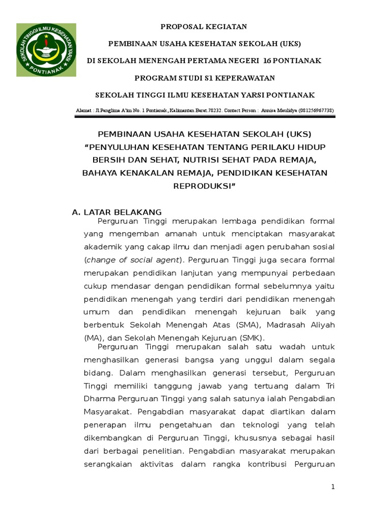 Contoh proposal pengabdian masyarakat bidang kesehatan. Proposal program kreativitas mahasiswa program pengadaan dan pengembangan usaha emping mlinjo dalam rangka peningkatan ekonomi warga du. Status pekerjaan ibu terhadap pemberian asi eksklusif. Anggota pengabdian nama lengkap. Pemberdayaan masyarakat terhadap usaha kesehatan agar menadi sehat sudah sesuai dengan undang undang ri nomor 36 tahun 2009 tentang kesehatan bahwa pembangunan kesehatan harus ditujukan untuk meningkatkan kesadaran kemauan dan kemampuan hidup masyarakat yang setinggi tingginya sebagai investasi bagi pembangunan sumber daya masyarakat. Undang undang nomor 23 tahun 1992 tentang kesehatan pasal 3 menyebutkan bahwa pembangunan kesehatan bertujuan untuk meningkatkan kesadaran kemauan dan kemampuan hidup sehat bagi setiap orang agar terwujud derajat kesehatan masyarakat yang optimal. Pada bayi di kelurahan simpong.