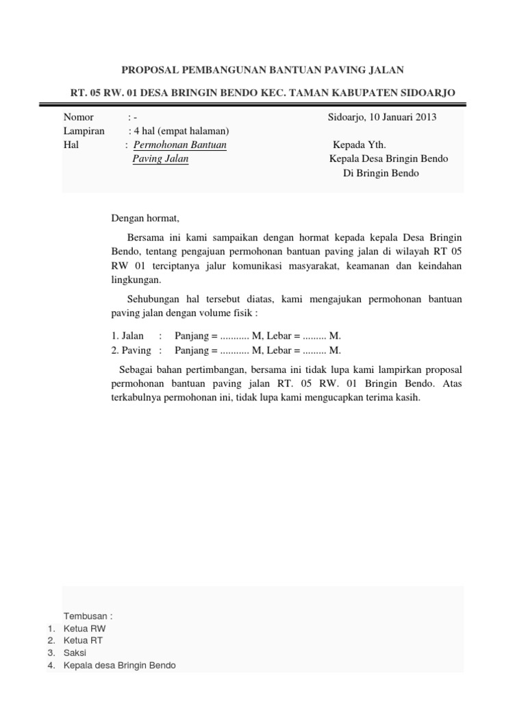 Pemerintah kabupaten kebumen kecamatan adimulyo desa tanbaharjo. Melalui kepala dinas pekerjaan umum. Academiaedu is a platform for academics to share research papers. Contoh proposal permohonan bantuan perbaikan jalan rabat tahun 2013. Contoh proposal perbaikan jalan lainnya proposal permohonan bantuan cor blok tingkat usaha rukun tetangga 04 tahun 2012 di. Contoh proposal perbaikan jalan jumat 17 maret 2017.
