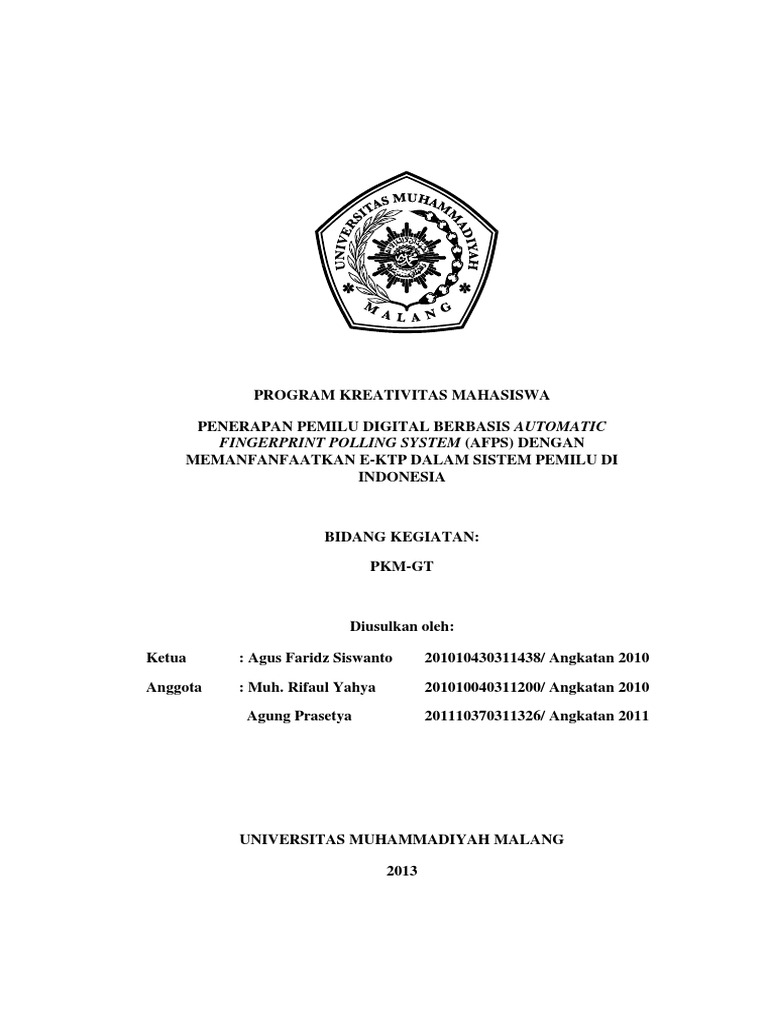 Contoh pkm gt gagasan tertulis yang pernah di danai dikti. Contoh proposal gt bidang olahraga dan pendidikan. Diharapkan bahwa proposal pkmgt ini dapat memberikan sumbangan pikiran yang mampu memberikan dampak baik bagi masyarakat lombok khususnya bagi suku sasak guna untuk menjaga dan melestarikan kesenian suku sasaq dengan semakin diperkuat dan diperkukuhnya lembaga lembaga yang aktif dalam dunia seni sebagai institusi atau lembaga yang men jaga dan melestarikan kesenian daerah lombok. Contoh proposal pkm 5 bidang tahun 2014. Contoh proposal pkm gt program kreativitas mahasiswa gagasan tertulis didanai dikti 2017. Eko fujianto 3063224007582006 humaidillah kurniadi w 9063224003922006 desy hosenainy 4083224102632008 universitas negeri malang malang ii 2010 halaman pengesahan usulan pkm gt 1.