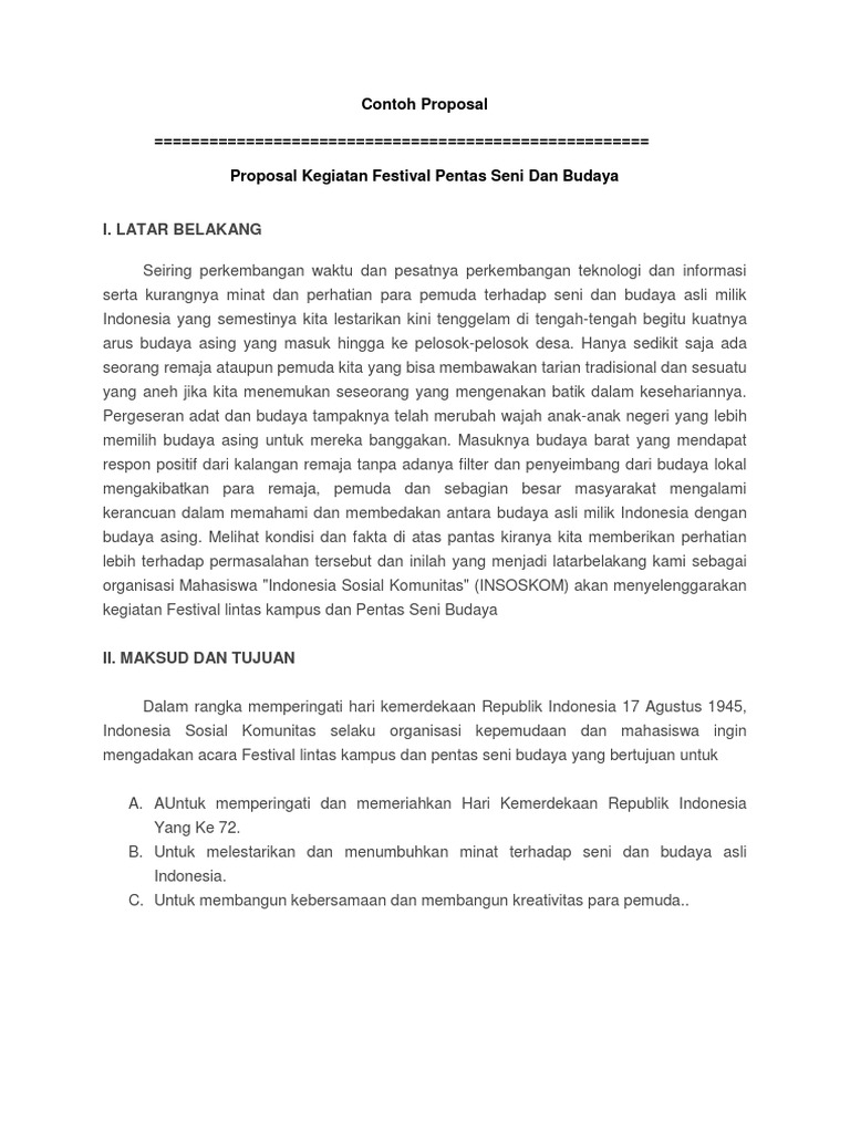 Contoh proposal seni budaya. Sebelum saya akhiri artikel contoh proposal bantuan dana kegiatan dan sistematika penulisan proposal kegiatan tidak ada salahnya juga saya singgung sedikit tentang apa itu definisi dari proposalproposal memiliki definisi yaitu rancangan tertulis bentuk pengajuan atau permohonan penawaran baik berupa ide gagasan maupun rencana kepada pihak lain untuk mendapatkan dukungan ijin dana dan lain. Contoh proposal kegiatan pameran seni rupa di sekolah banyak di antara kita yang masih tidak tau cara membuat sesuatu yang mungkin erlihat tak berguna atau tak sering kita jupai tapi kenyataanya hal yang tak berguna itu dapat menjadi dangat penting bagi seseorang. Khususnya seni rupa serta untuk memenuhi tugas akhir semester genap dalam pelajaran seni budaya ini. Dengan mempelajari berbagai contoh proposal kegiatan di atas maka akan menghasilkan proposal yang sistematis dan mudah dipahami. Secara sederhana pagelaran seni budaya adalah sebuah kegiatan menunjukkan eksistensi daripada seni budaya tradisional. Contoh proposal tentang kebudayaan latar belakang.
