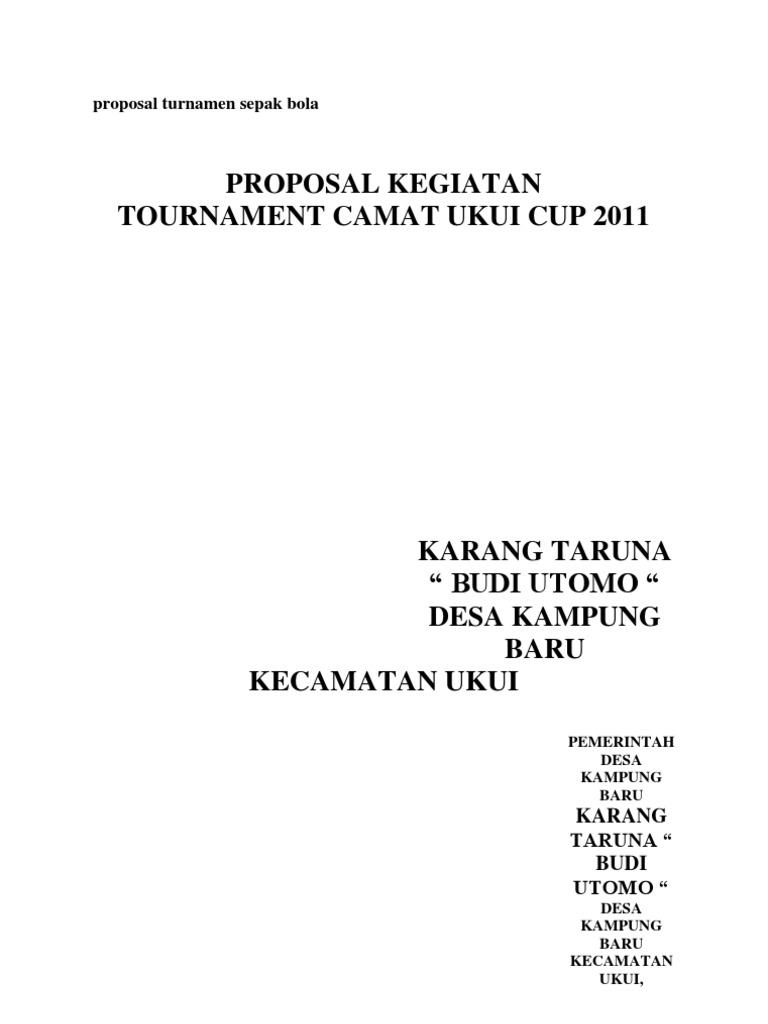 Demikianlah proposal ini dibuat dalam rangka turnamen bola volly antar rt se desa jati 2012 dengan harapan agar dapat meningkatkan daya saing dan tercipta pemikiran positif dari kalangan masyarakat umum sehingga kegiatan ini dapat berguna dan bermanfaat bagi semua pihak. Susunan panitia turnament volly ball 2016 1. Secara garis besar bentuk contoh proposal kegiatan turnamen bola voli ini adalah sama dan hanya memiliki sedikit perbedaan saja. Contoh proposal kegiatan turnamen bola voli hampir sama dengan contoh proposal kegitan turnamen futsal hampir sama juga dengan contoh proposal kegiatan kampusnamun secara lebih detail ada sedikit perbedaan terutama pada jenis acara dan mungkin susunan acaranya juga. Panitia turnamen terbuka bola volly desa mundakjaya 2013 ketua sekretaris aris purwanto darsim mengetahui kuwu desa mundakjaya h. Proposal kegiatan turnamen bola volley karang taruna bhakti sembadadocx.