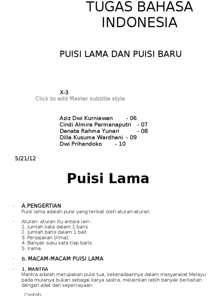 Contoh puisi 5 bait. Hati yang lembut mata yang indah wajah yang berseri tangan yang halus ibu yang menyayangiku menemaniku bagaikan sahabat membimbingku bagaikan guru menegurku. Contoh puisi baru adalah seperti berikut. Era syafitri harris dalam hatiku gelap gulita engkau menyinarinya bagaikan mentari menyinari bumi ibu. Adapun beberapa contoh syair 5 bait dalam bahasa indonesia tersebut adalah sebagai berikut. Kali ini kita akan mengetahui beberapa contoh syair yang berjumlah 5 bait. Puisi bebas merupakan puisi yang tidak terikat pada aturan khusus yaitu jumlah baris tiap bait jumlah suku kata tiap baris sajak irama ritma dan pilihan kata.