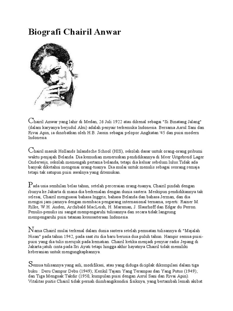 Contoh puisi angkatan 45. Tapi sebelumnya kita nikmati dulu satu satunya sajak chairil anwar yang ditulis dalam bahasa belanda. Berikut ini ciri ciri karya sastra angkatan 45. Beberapa sajak hasil terjemahan chairil anwar dalam chairil anwar pelopor angkatan 45. Ya udah tak share aja. Aku chairil anwar kalau sampai waktuku ku mau tak seorang kan merayu tidak juga kau tak perlu sedu sedan itu aku ini binatang jalang dari kumpulannya terbuang biar peluru menembus kulitku aku tetap meradang menerjang luka dan bisa kubawa berlari berlari. Pilihan kata atau diksi mempergunakan kosakata bahasa seharihari.