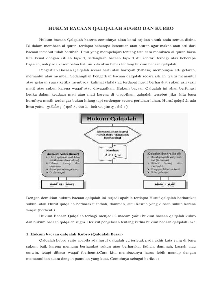 Huruf itu mati karena dihentikan atau diwaqafkan dan berada pada akhir kata. Dari pengertian di atas sebenarnya kita sudah mengetahuinya. Dalam keadaan ini qalqalah dilakukan apabila bacaan diwaqafkan tetapi tidak diqalqalahkan apabila bacaan diteruskan. 2qalqalah kubra قلقله كبرى kubra artinya besar. Hukum bacaan qalqalah sugra. Contoh bacaan qalqalah sugra.