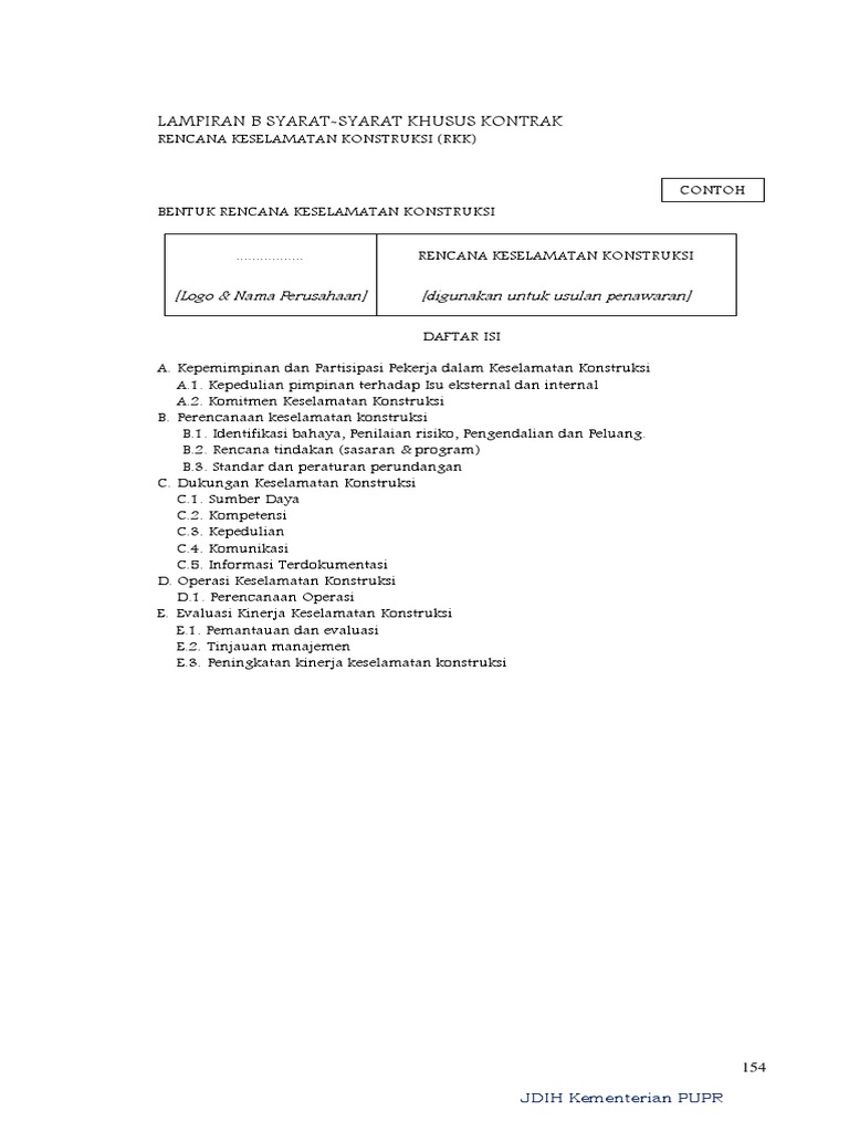 Contoh rencana keselamatan konstruksi 2019. Kepada rekan rekan sekalian silahkan download contoh format rkk yang telah disi form nya mohon untuk bisa diimprove kembali terhadap kecocokan. Berdasarkan peraturan menteri pekerjaan umum nomor 05prtm2014 tentang pedoman sistem manajemen keselamatan dan kesehatan kerja smk 3 konstruksi bidang pekerjaan umum telah mengatur mengenai smk 3 konstruksi bidang pekerjaan umum tugas tanggungjawab dan wewenang serta biaya penyelenggaraan smk3 konstruksi bidang pekerjaan umum namun demikian belum mengatur mengenai rincian kegiatan. E3format penilaian rencana keselamatan konstruksi rkk 251. Pokja pemilihan dalam melakukan evaluasi terhadap rkk diatur dalam permen 142020 bahwa evaluasi terhadap persyaratan rencana keselamatan konstruksi rkk dalam elemen smkk dilakukan dengan kriteria penilaian ada atau tidak adaapabila salah satu elemen tersebut tidak ada maka dinyatakan gugursementara untuk evaluasi terhadap pakta komitmen berlaku sebagaimana telah. Download file rkk konstruksi 2019 dan petunjuk pengisiannya sudut. Bentuk rencana keselamatan konstruksi rkk 2019 bentuk ialah satu titik temu antara ruang dan massabentuk juga merupakan penjabaran geometris dari bagian semesta bidang yang di tempati oleh objek tersebut yaitu ditentukan oleh batas batas terluarnya namun tidak tergantung pada lokasi koordinat dan orientasi rotasi nya terhadap bidang semesta yang di tempati.
