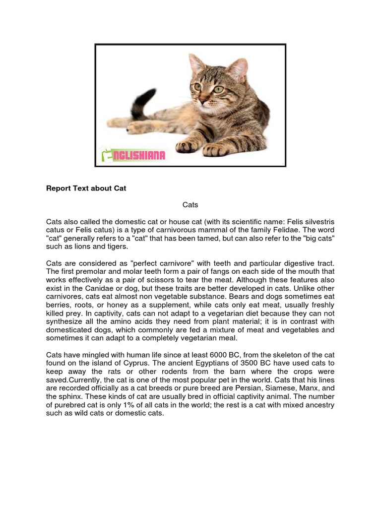 Kucing merupakan hewan mamalia yang penurut sehingga sering dijadikan sebagai peliharaan. Posted in adjectives adverbs basic grammar descriptive text essay text gerunds grammar modals nouns uncategorized tagged contoh report text about butterfly contoh report text cat contoh report text singkat tentang hewan contoh teks report dalam bahasa inggris contoh teks report tentang hewan contoh teks report tentang kucing. Selamat membaca dan semoga bermanfaat buat sahabat sbi. Report dalam concise oxford dictionary edisi 10 diartikan sebagai 1 an account given of a matter after investigation or consideration. Contoh report text singkat tentang kucing.