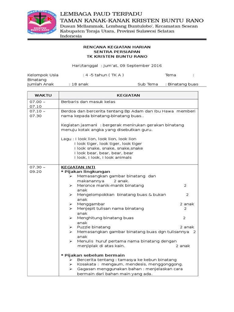 Contoh rkh paud tema binatang. Berikut ini adalah file tentang rkh rkm paud tema binatang yang bisa bapakibu unduh secara gratis dengan menekan tombol download pada tautan link di bawah ini. Adminsitrasi paud salah satu penunjang kelengkapan administrasi guru perangkat pembelajaran dikelas kali ini kami bagikan salah satunya yakni rpph rencana pelaksanaan pembelajaran harian dengan tema binatang sub tema binatang di darat dan sub sub tema ayam yang termasuk dalam materi kurikulum 2013 k13 untuk digunakan di semester 1 kelompok tk a. Yakni salah satu perangkat dari bererapa perangkat administrasi yang harus disusun dan dipersiapkan sebelum kegiatan bermain belajar dilakukan. Daftar tema berisi sejumlah tema dalam setahun yang dibagi menjadi 2 semester. Rpph tema binatang usia 5 6 tahun semester 1 kurikulum 2013 ini merupakan link rpph paudtk terkait yang sengaja penulis bagikan untuk membantu anda sebagai guru dalam menyusun sendiri serta menyiapkan rpph tentang binatang kurikulum 2013. Laporan observasi ke yayasan pendidikan luar biasa.