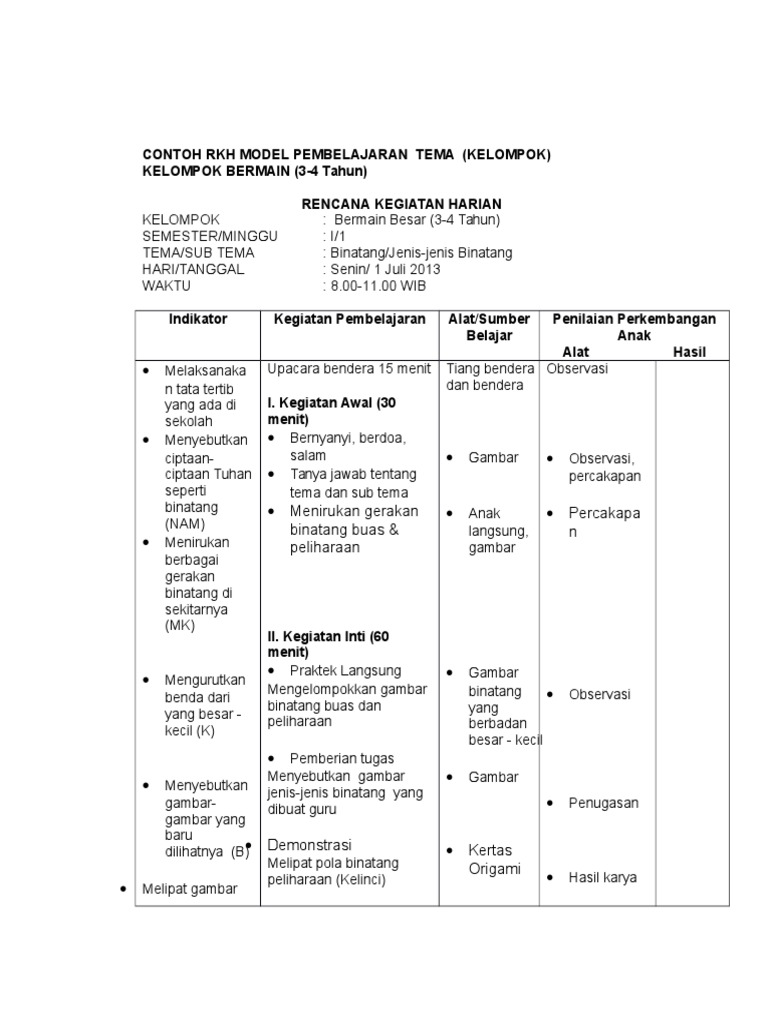 Contoh Rkh Rpph Paud Tema Diri Sendiri Pdf Free Download