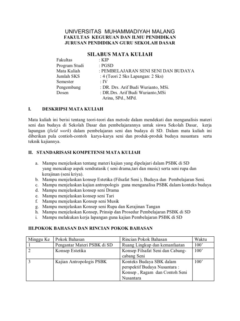 Silabus Mata Kuliah Seni Budaya Universitas Ah Malang