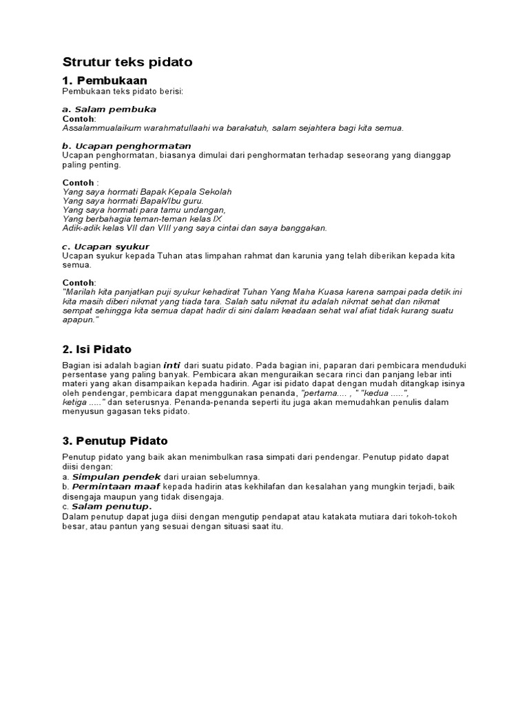 5 contoh kalimat pembuka pidato yang umum digunakan pembuka pidato biasanya berisikan beberapa kalimat sebelum memulai membacakan isi. Pidato adalah bentuk kegiatan yang menyampaikan sebuah aspirasi pemikiran atau segala sesuatu yang ingin disampaikan di depan orang banyak. Contoh pendahuluan pidato 2 segala puji bagi allah yang menguasai seluruh alam. Setiap orang memiliki ciri khas tertentu dalam menyampaikan isi pidatonya. Apalagi untuk kalian yang masih duduk di bangku sekolahan. Contoh pendahuluan pidato 3 segala puji bagi allah yang menguasai seluruh alam.