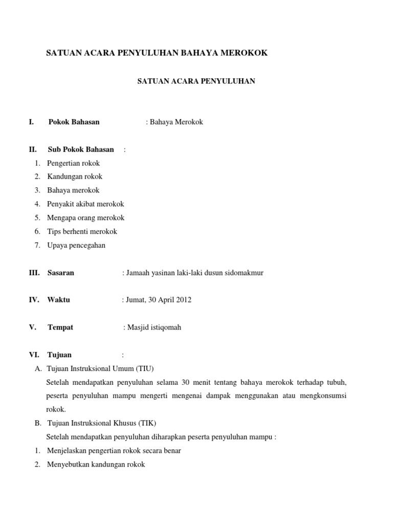 Contoh format acara penyuluhan satuan acara penyuluhan sap topik. Satuan acara penyuluhan phbs satuan acara promosi kesehatan sap. 15 menit sasaran. Tema pt keren sekali. Contoh satuan acara penyuluhan sap 2014 46 oktober 6 september 1 agustus 20 mei 11 april 4 februari 1 januari 3 2013 4 november 4 about me. Contoh aktivitas fisik yang dapat dilakukan jalan cepat.