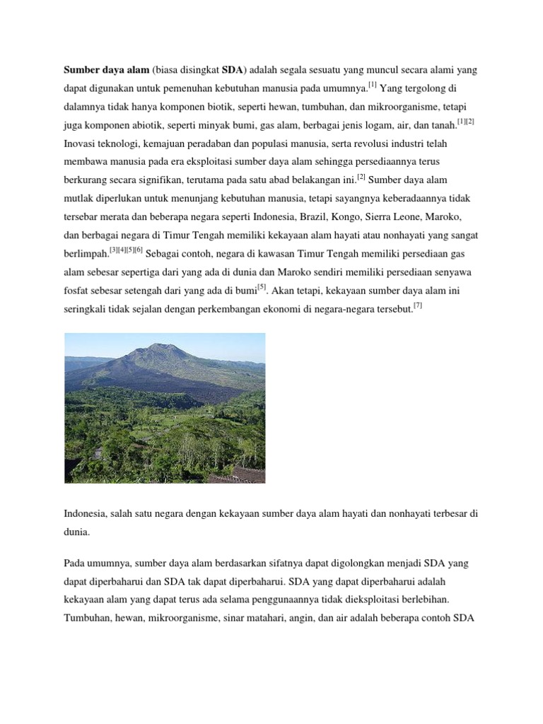 Sumber daya alam atau sda dapat diklasifikasikan dalam dua kelompok berdasarkan jenisnya yaitu sumber daya alam hayati sumber daya alam biotik dan sumber daya alam non hayatisumber daya alam non hayati dikenal juga dengan istilah sumber daya alam abiotikfrase non hayati dapat diartikan tak hidup. Sumber daya alam non hayati berasal dari benda tak hidup antara lain tanah batuan dan bahan tambang. Sedangkan sda nabati merupakan produsen utama rantai makanan menghasilkan. Pasir berasal dari hancuran batuan.