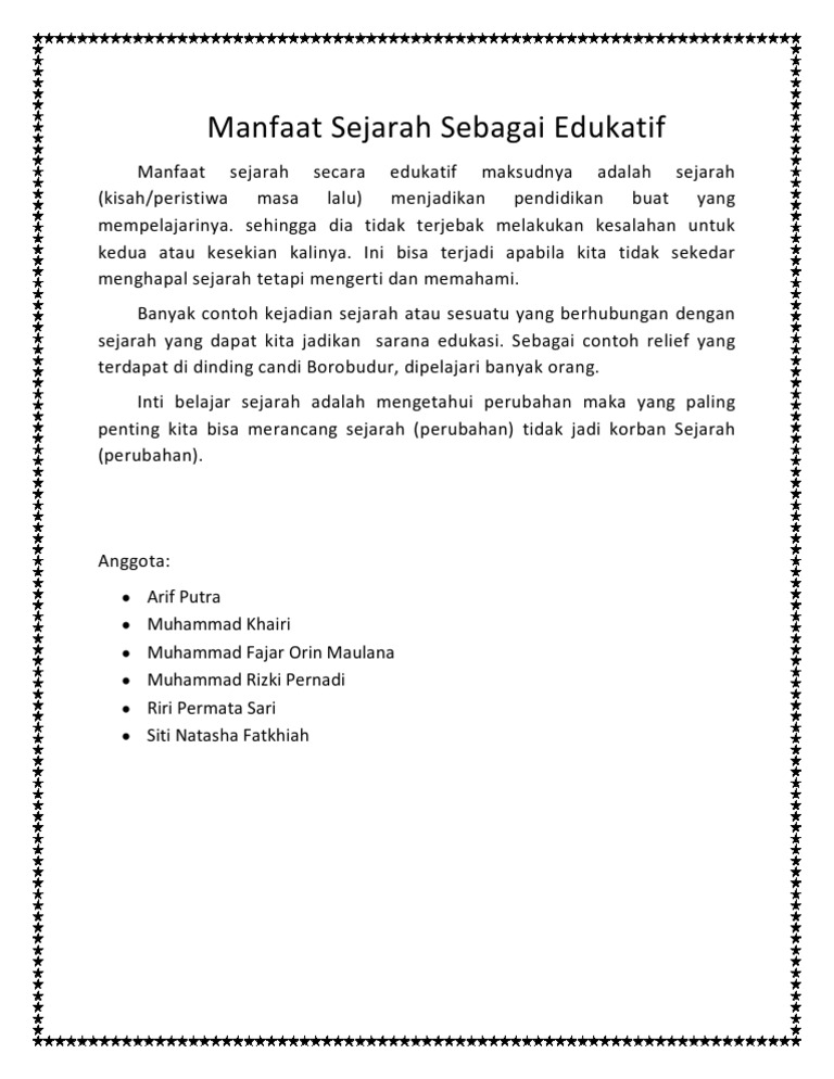 Contoh sejarah sebagai peristiwa. Tulisan menjadi alat untuk merekam dan mengabadikan peristiwa peristiwa sejarah untuk menyimpan pikiran manusia mengenai peristiwa tertentu sehingga pikiran tersebut akan bertahan lama daripada sekedar. Sejarah adalah gambaran tentang peristiwa peristiwa masa lampau yang dialami manusia disusun secara ilmiah meliputi kurun waktu tertentu. Contoh sejarah sebagai peristiwa berikut ini adalah contoh contoh dari sejarah sebagai peristiwa. Sebagai contoh peristiwa prokiamasi kemerdekaan 17 agustus 1945. Disebut sejarah sebagai objek. Sejarah sebagai peristiwa adalah kejadian kenyataan aktualitas yang sebenarnya telah terjadi atau berlangsung pada masa lalu.
