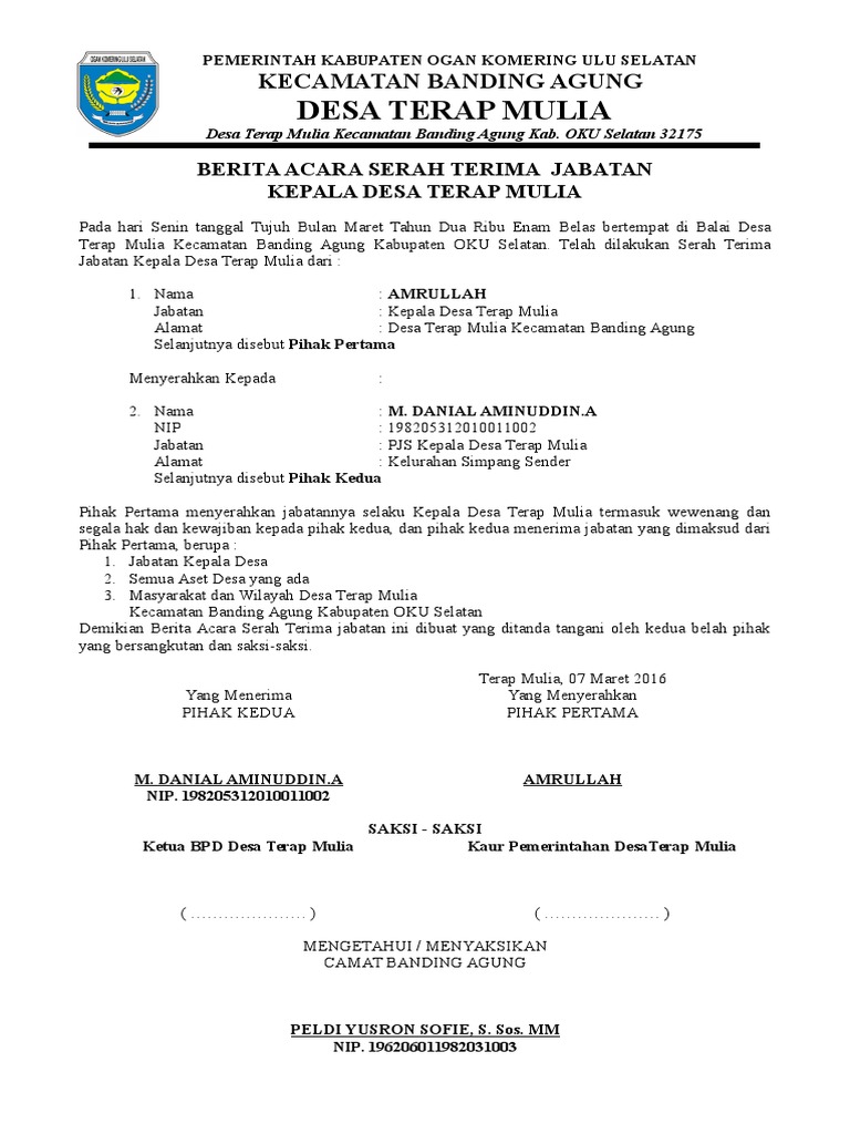 Serah terima jabatan merupakan sebuah moment dimana seseorang yang dulunya menjabat sebuah jabatan menyerahkan jabatannya karena masa tugas yang telah habis atau karena sebab lainnya. Contoh surat pemberitahuan secara resmi nah itulah 3 contoh surat berita acara serah terima barang. Contoh surat serah terima jabatan terbaru serah terima jabatan dalam sebuah perusahaan atau organisasi adalah hal yang sudah umum dilakukan. Anda bisa mendownload atau mencetak gambar atau foto contoh berita acara serah. Selain berita acara serah terima pekerjaan diatas masih banyak lagi contoh berita acara lainnya seperti berikut ini. Biasanya terima jabatan ini terjadi karena adanya pergantian jabatan dari satu pihak kepada pihak yang lain.