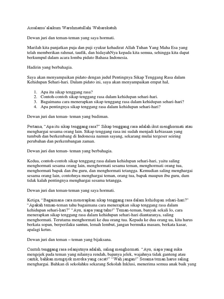 Salah satunya indonesia mempunyai agama yang berbeda beda. Jadi toleransi adalah sikap saling menghargai antarmanusia untuk dan saling memudahkan dalam melakukan sesuatu. Ditinjau dari isi tenggang rasa merupakan contoh sikap sila ke 2 pancasila dalam kehidupan. Adalahcoid tenggang rasa adalah suatu sikap hidup dalam ucapan perbuatan dan tingkah laku yang mencerminkan sikap menghargai dan menghormati orang lain. Dalam kehidupan sehari hari toleransi dapat diwujudkan dengan sikap sikap sebagai berikut. Jangan salah anak laki laki juga bisa membantu ibu memasak di dapur hanya saja tidak seintens anak perempuan.