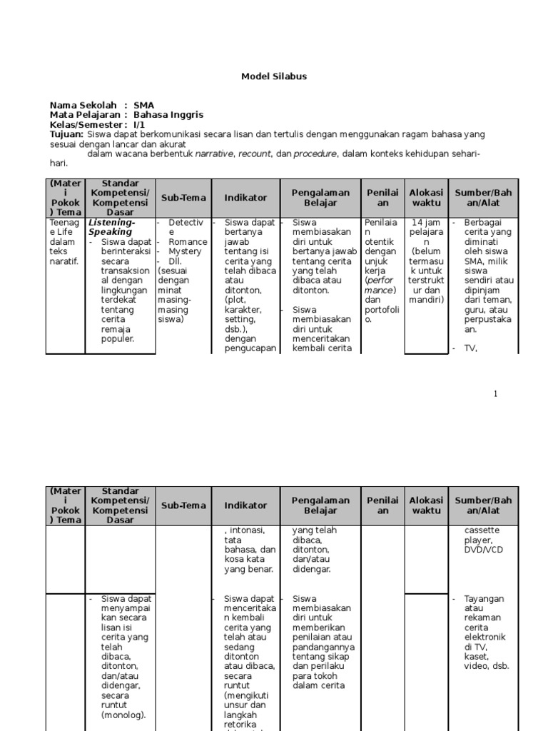 Contoh rpp dan silabus bahasa inggris kelas 2 sma informasi guru berikut ini adalah contoh rpp dan silabus bahasa inggris kelas 2 sma yang bisa anda download secara gratis di website kami. Silabus bahasa inggris ktsp smp kelas 7 8 dan 9 hello para jagoan bahasa inggris.