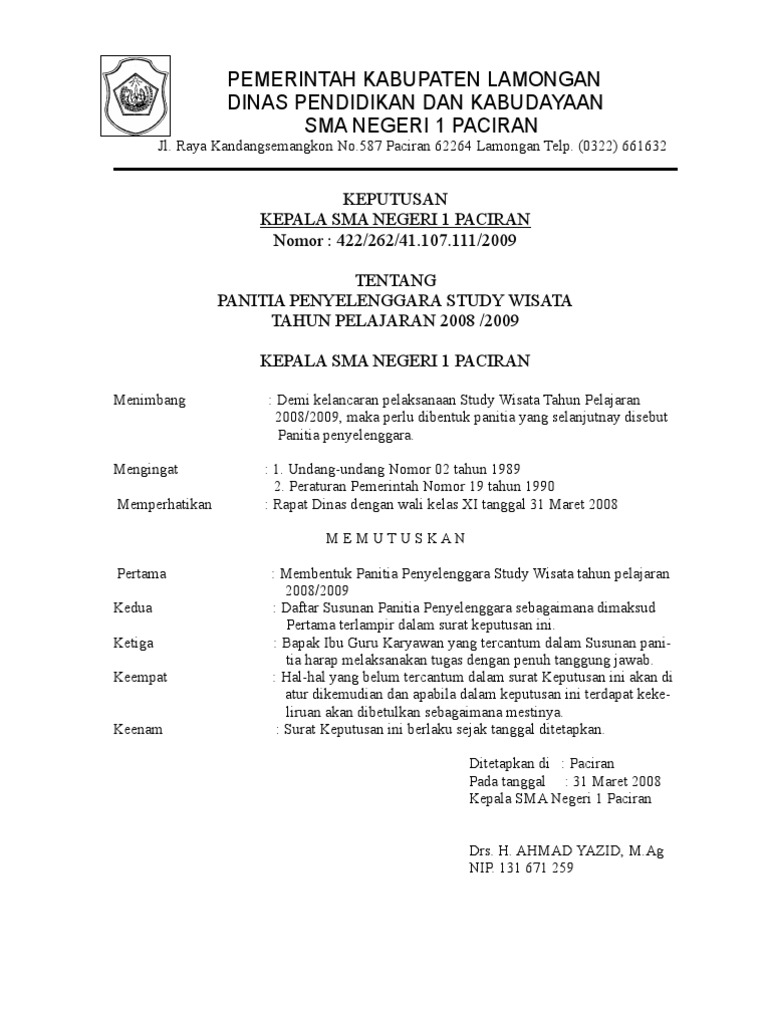 Karusel sebelumnya karusel berikutnya. Minggu 23 februari 2020 tambah komentar edit. Kumpulan contoh surat keputusan sk kepala sekolah lengkap administrasi sekolah sk kepala sekolah surat keputusan atau yang biasa lebih dikenal dengan sk merupakan sebuah surat pernyataan yang dikeluarkan oleh lembaga tertentu formal maupun non formal yang berisi suatu kebijakan atau keputusan tertentu yang berhubungan dengan lembaga tersebut. Blog berisi informasi seputar cpns pppk 2019. Contoh sk surat keputusan penetapan kepanitiaan renovasi. Himpuna n mahasiswa langkumbe hipma lkb periode 2016 2017.
