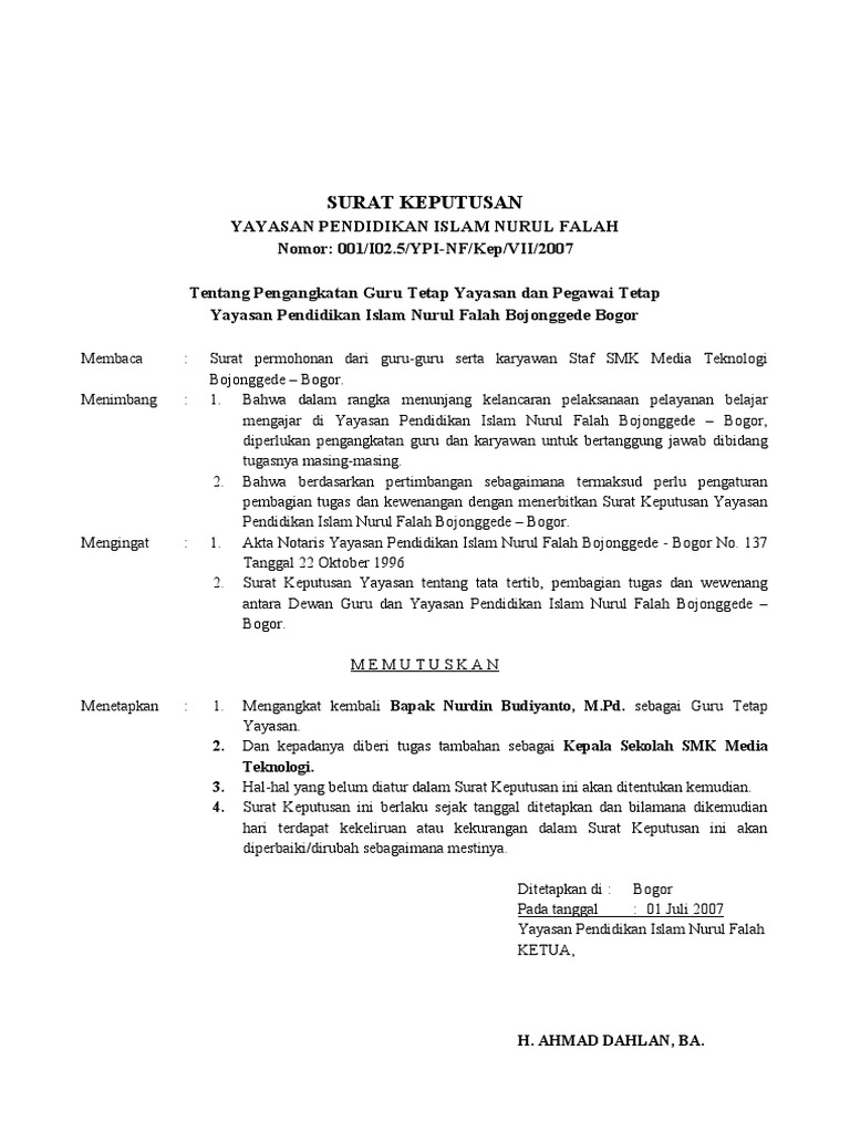 Contoh sk pengangkatan kepala sekolah smk oleh yayasan doc. Bagi anda gtt ataupun kepala sekolah yang butuh contoh sk pengangkatan guru honorgtt terbaru di sini saya memberikan contohnya. 6 6 mendukung 2 2 menolak. 001 ydwk vii 2017. Contoh sk pengangkatan kepala sekolah tk oleh yayasan doc. Guru honor ataupun gtt umumnya sk nya dibuat oleh kepala sekolah. Contoh surat keputusan pengangkatan kepala sekolah merupakan surat keputusan yang dikeluarkan oleh ketua yayasan tentang pengangkatan kepala sekolah yang barujika anda ingin melihat bagaimana contohnya berikut ini kami sertakan di bawah ini.